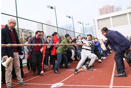 2月6日中午,由集團(tuán)工會(huì)組織的職工迎春拔河比賽在全員新春培訓(xùn)期間熱鬧開場(chǎng)。來(lái)自集團(tuán)12家單位組建的8支隊(duì)伍參加了比賽,現(xiàn)場(chǎng)一片歡呼沸騰。 隨著裁判的一聲哨響,對(duì)陣雙方拼盡全力,你來(lái)我往,粗大的麻繩立刻就被緊繃成了一根筆直的“鐵繩”。在第二輪富強(qiáng)公司對(duì)陣路橋公司的