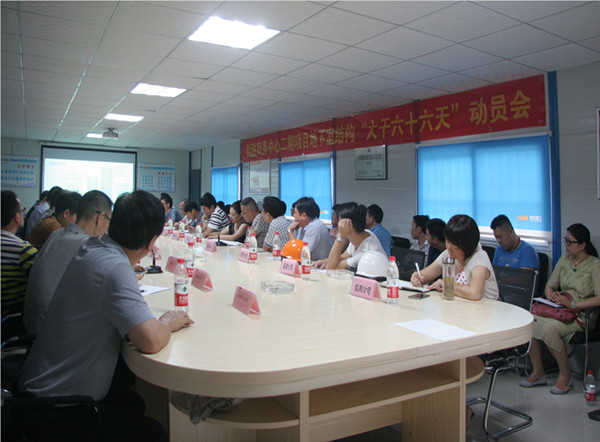 ? ? 為進一步保證恒融商務(wù)中心二期項目地下室結(jié)構(gòu)按期封頂,8月2日下午,在恒融中心二期項目部召開了一次“大干六十六天”的動員會。集團總經(jīng)理應(yīng)志剛,股份公司副總經(jīng)理劉宣傳,恒融項目部,公司機電安裝、智能集成、鋼結(jié)構(gòu)等分公司,公司工程管理部、安全生產(chǎn)部、質(zhì)量管理部、辦公室等部門,樁基、巖土、土建、周材等分包單位出席會議。